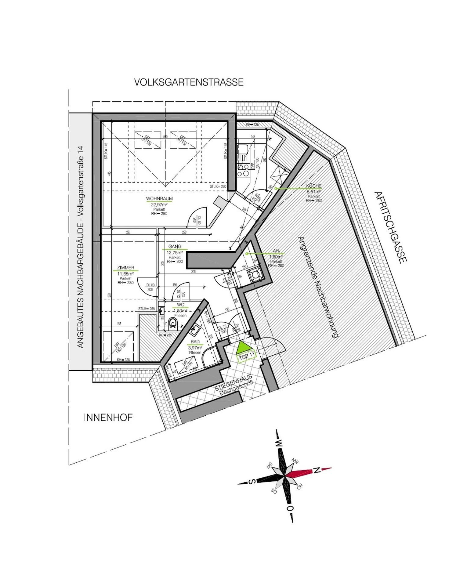 Charming attic apartment in Afritschgasse with cozy slanted ceilings: Air-conditioned, consisting of a bedroom, living-dining area, kitchen, hallway, storage room, bathroom with shower, and separate toilet. Perfect for singles or couples!